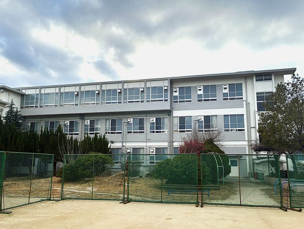 校舎の外壁補修・塗装を行いました。